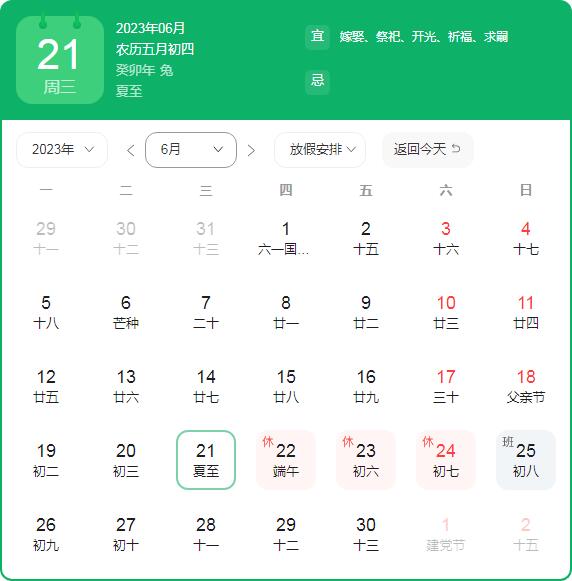 6月25日上班,為法定調(diào)休補班。